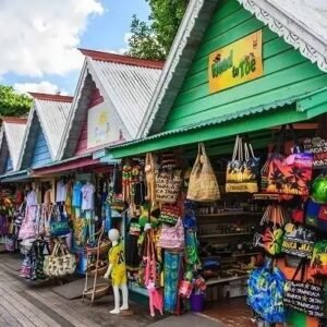 Explore a wide range of shops, boutiques and stalls offering Jamaican‑themed crafts, souvenirs, clothing, artwork and more.